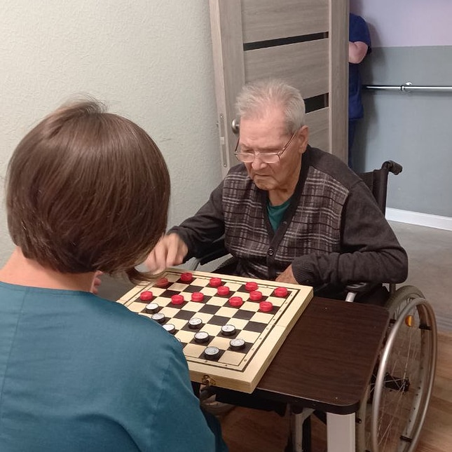Досуг — неотъемлемая часть дня. Педагог-организатор в пансионате занимается с подопечными на протяжении дня. Особое внимание мы уделяем пациентам со сниженными способностями по причине различных заболеваний, например болезни Паркинсона. Каждому подопечному мы подбираем занятия исходя из его желаний.